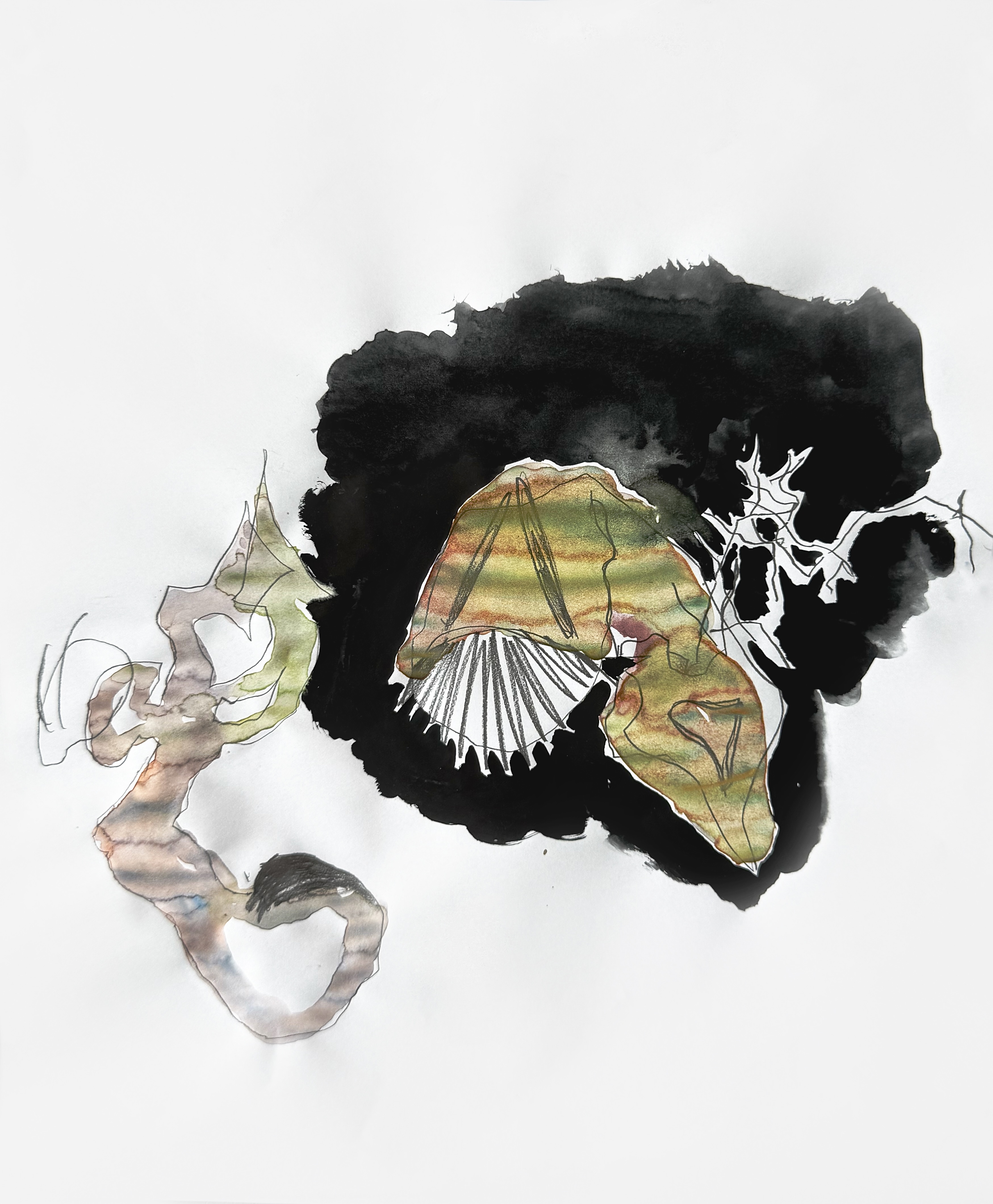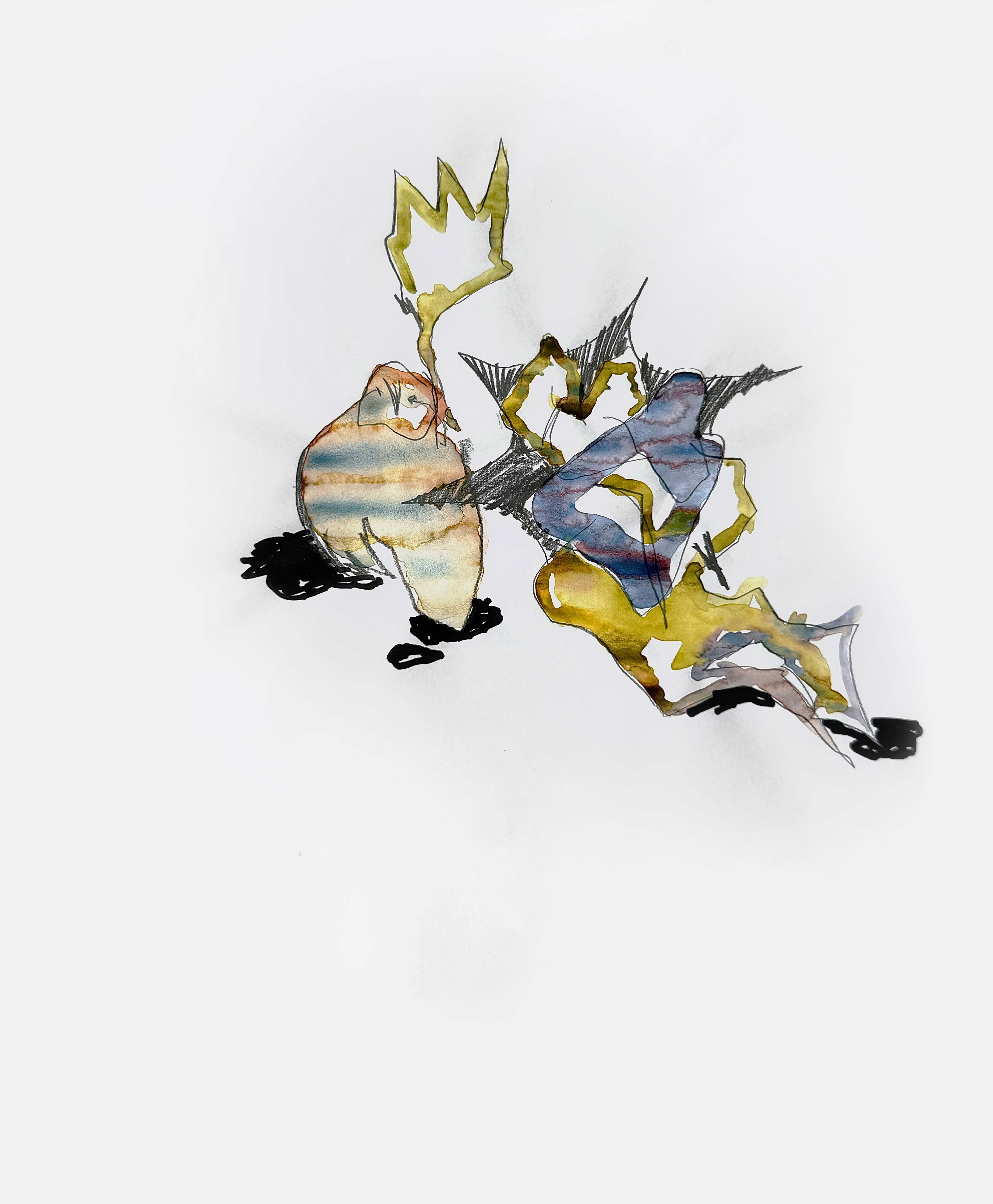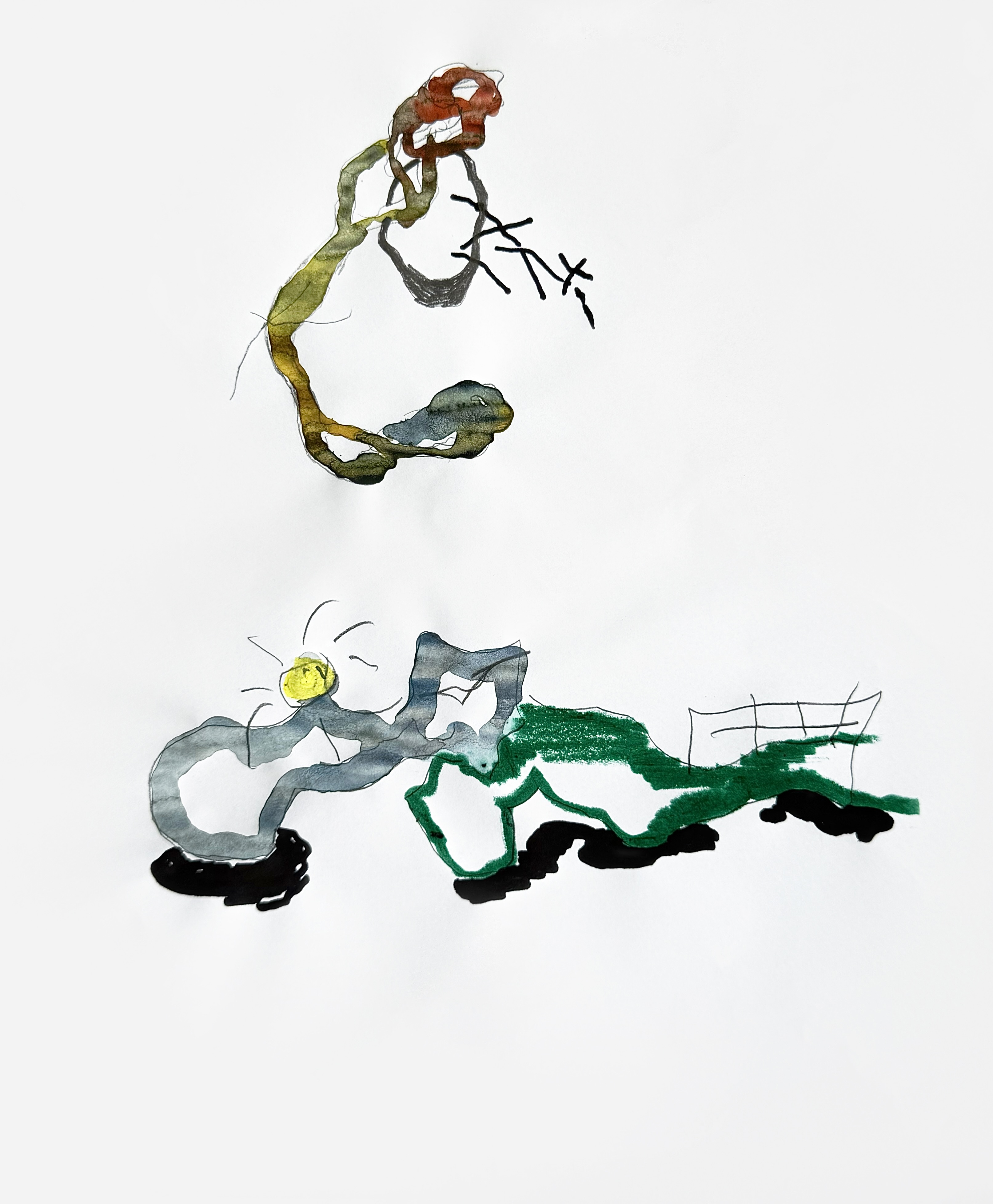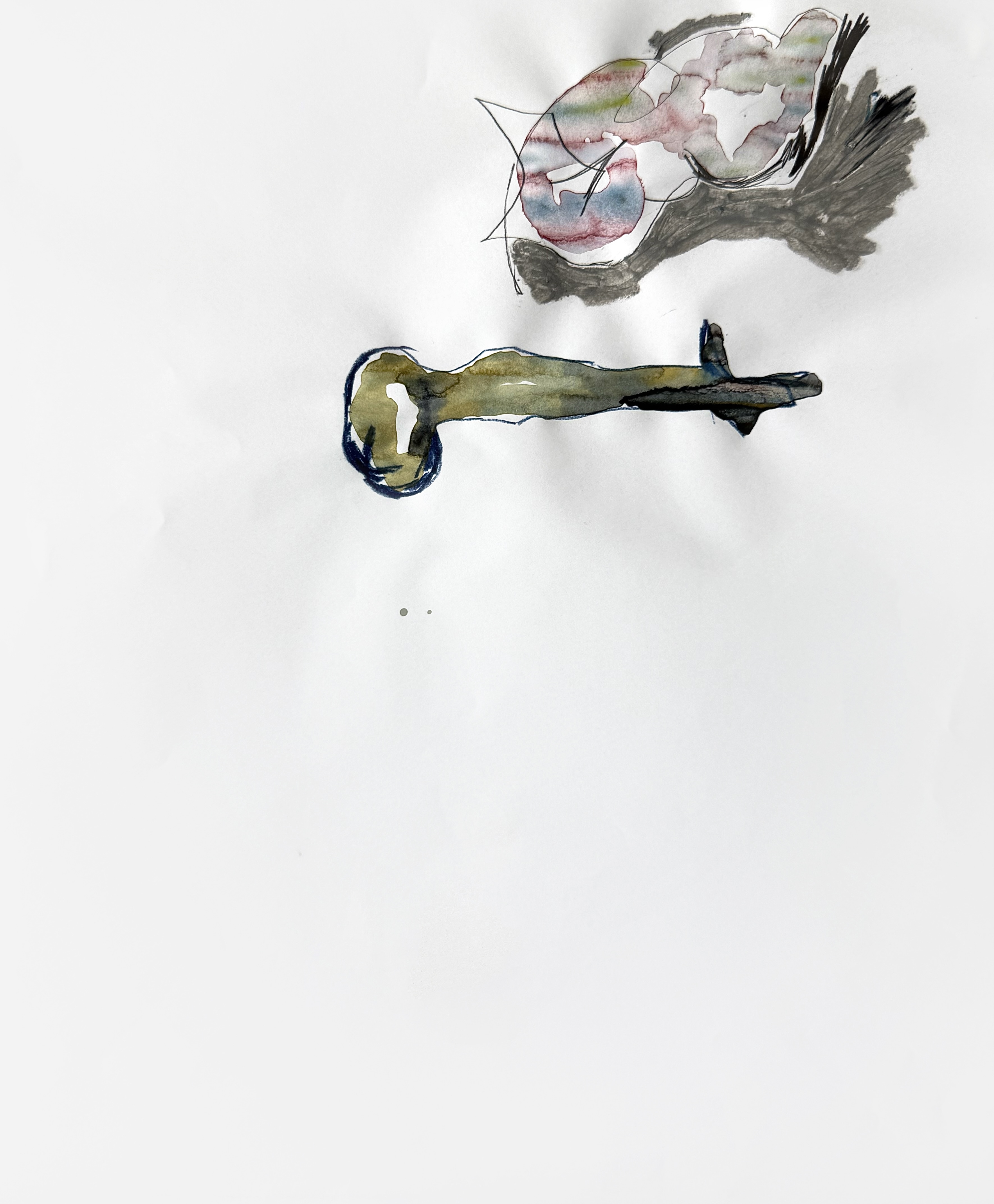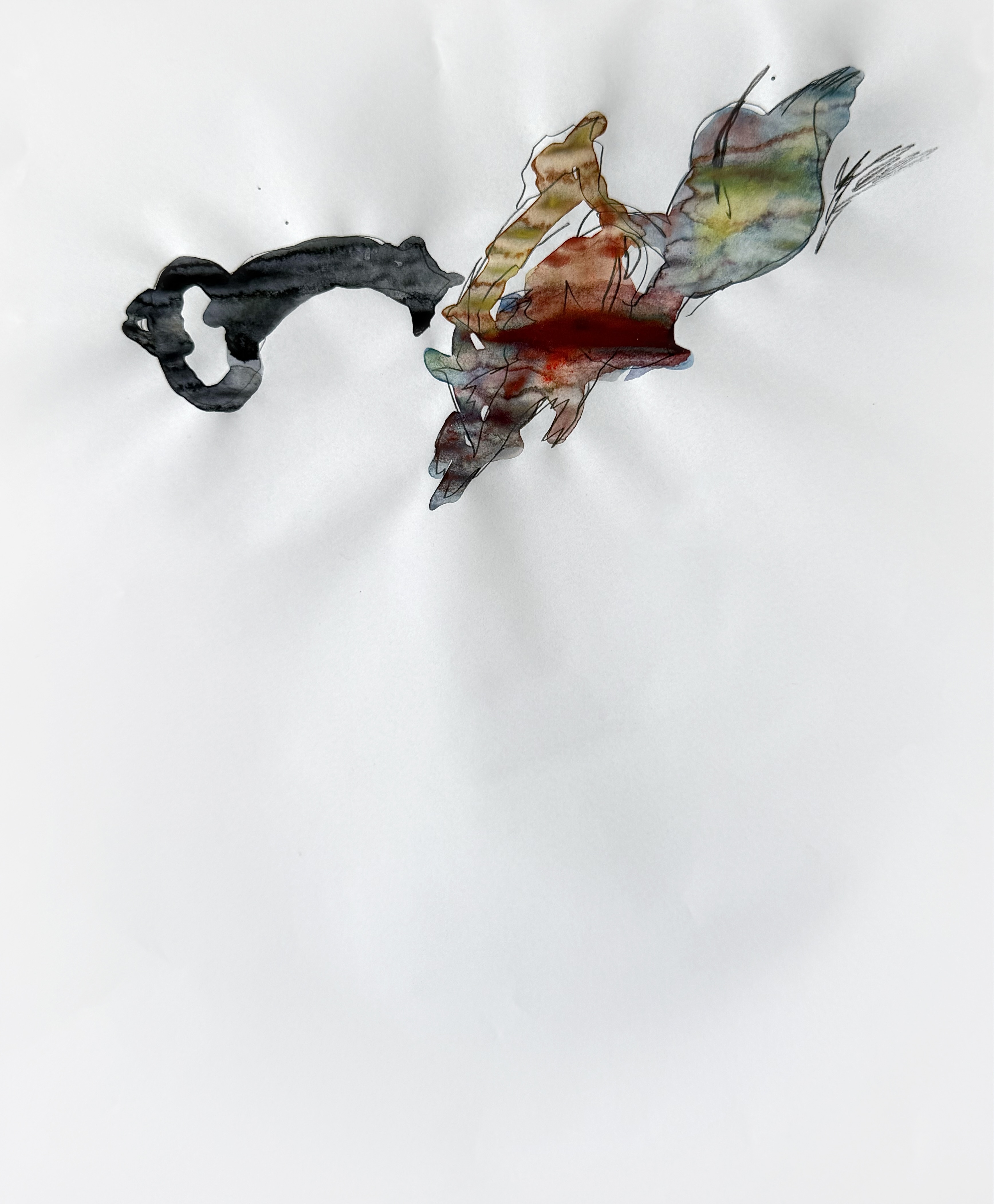 Paper, pencil, pen, watercolor, marker, pastel, monotype