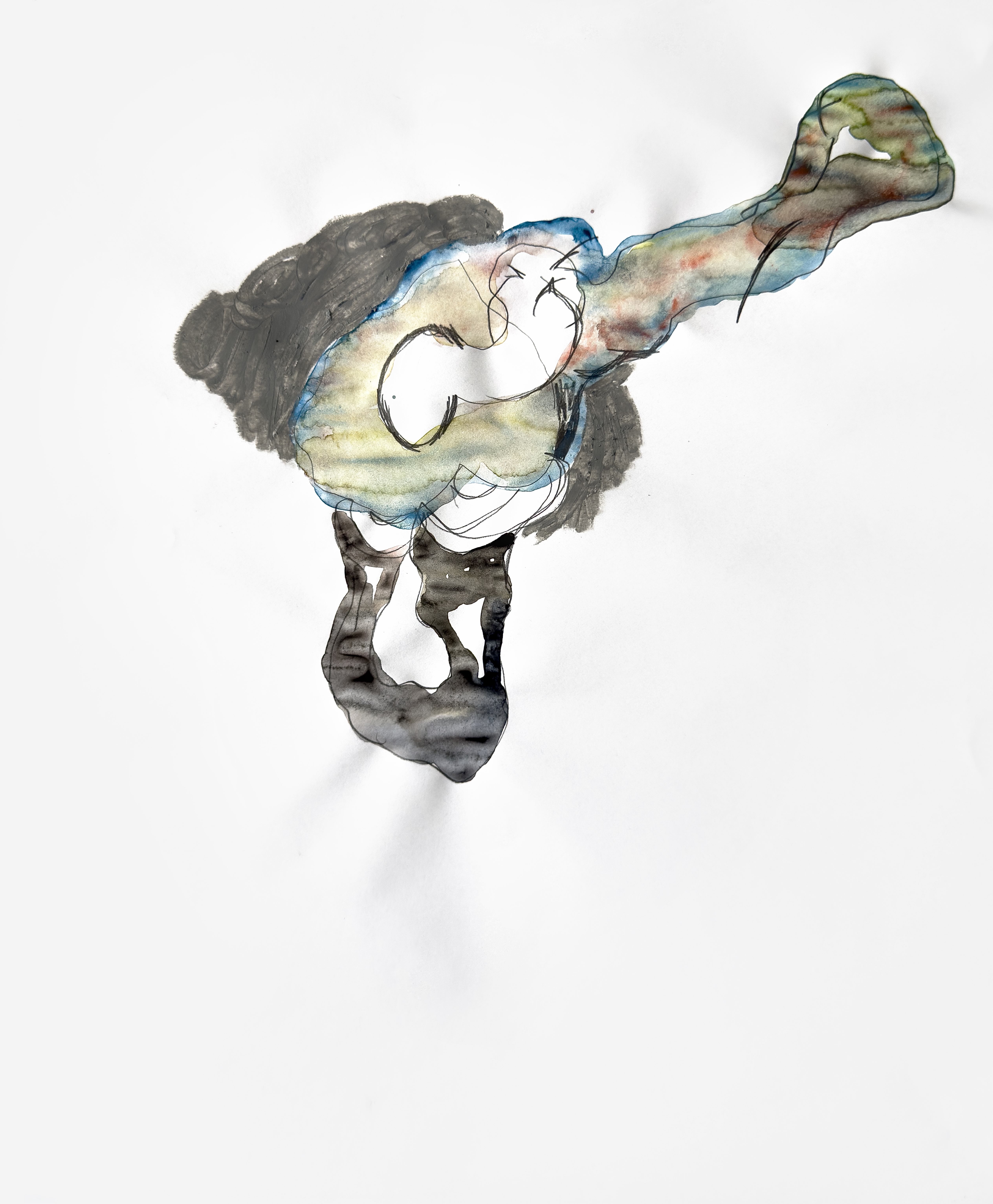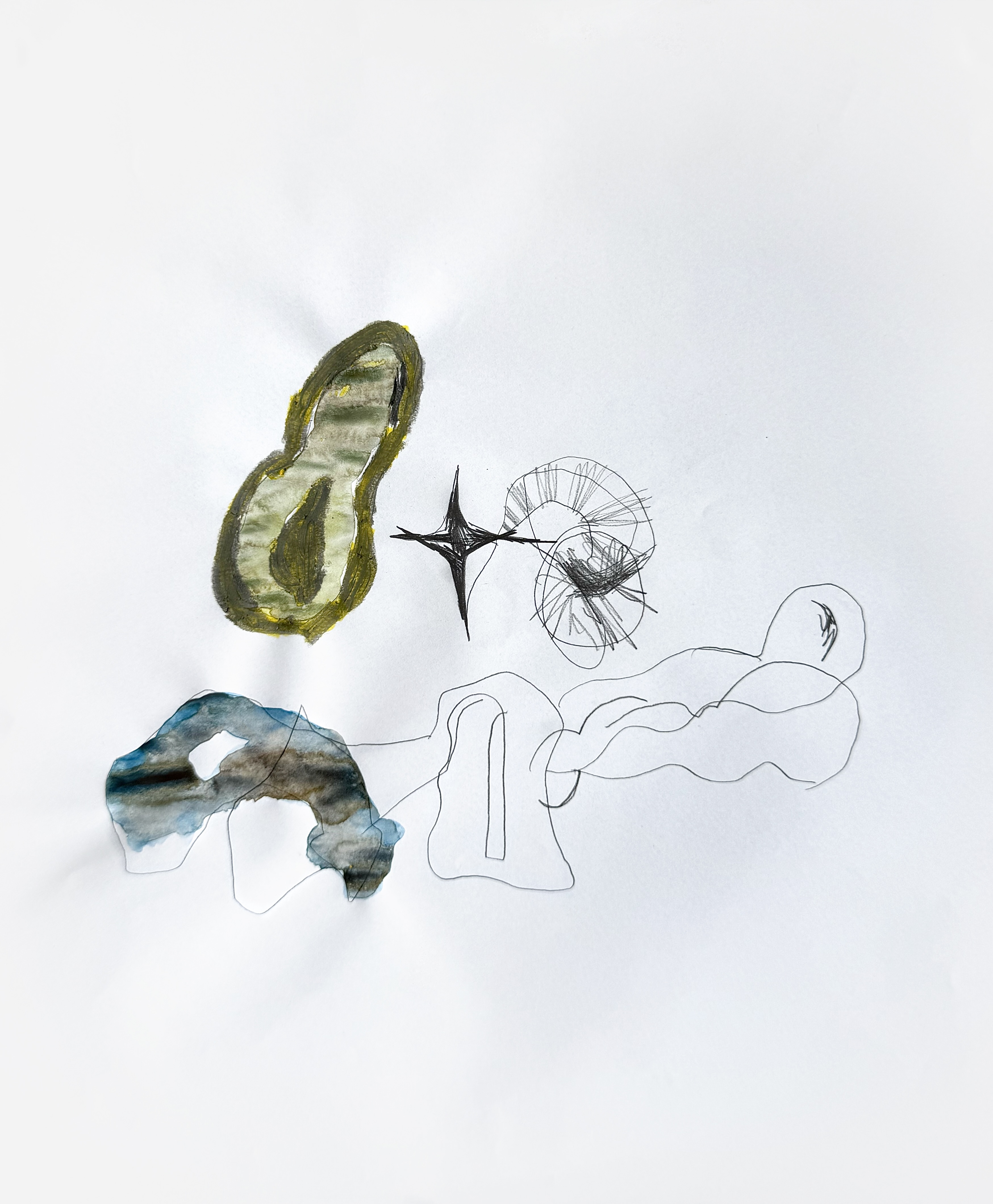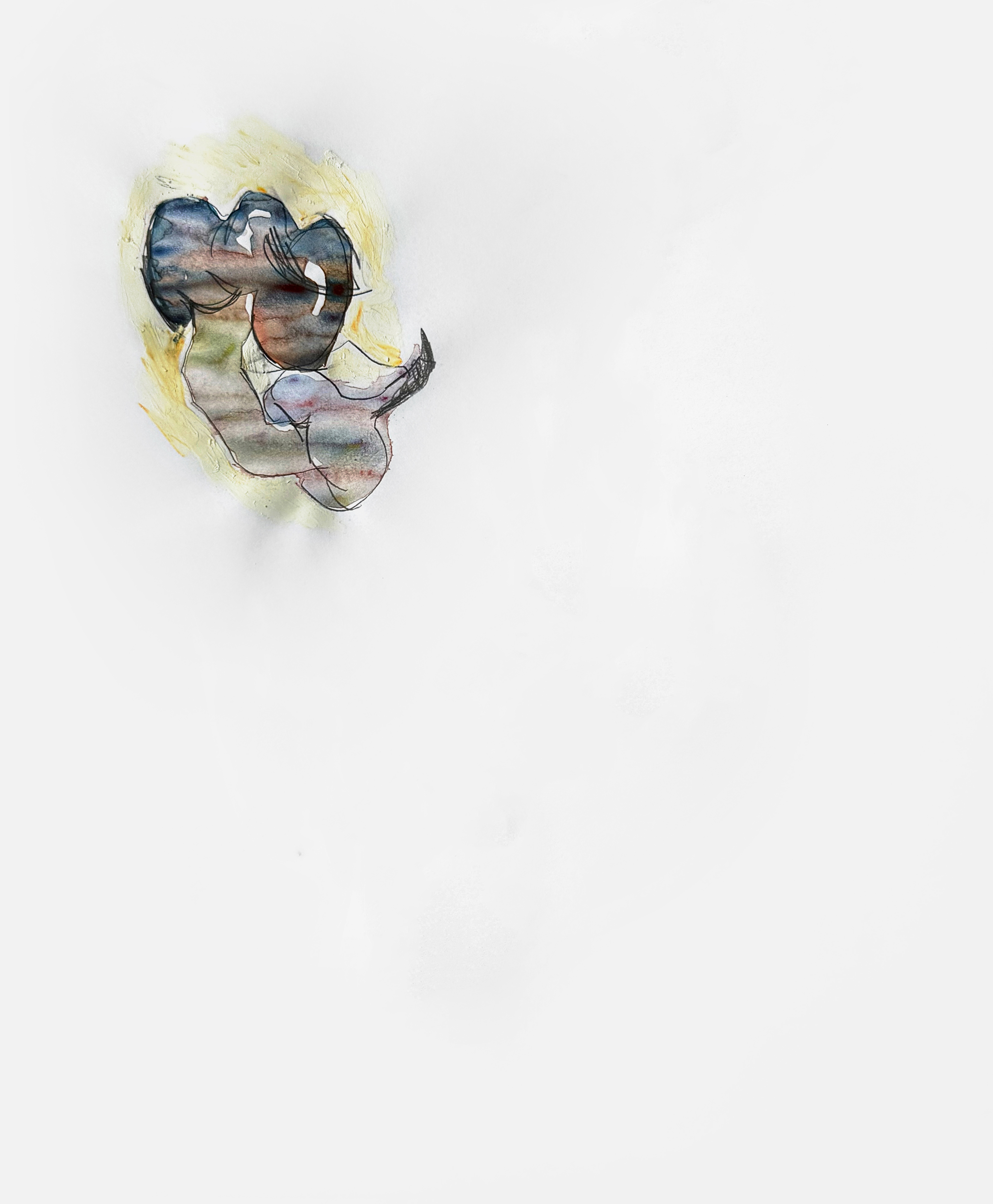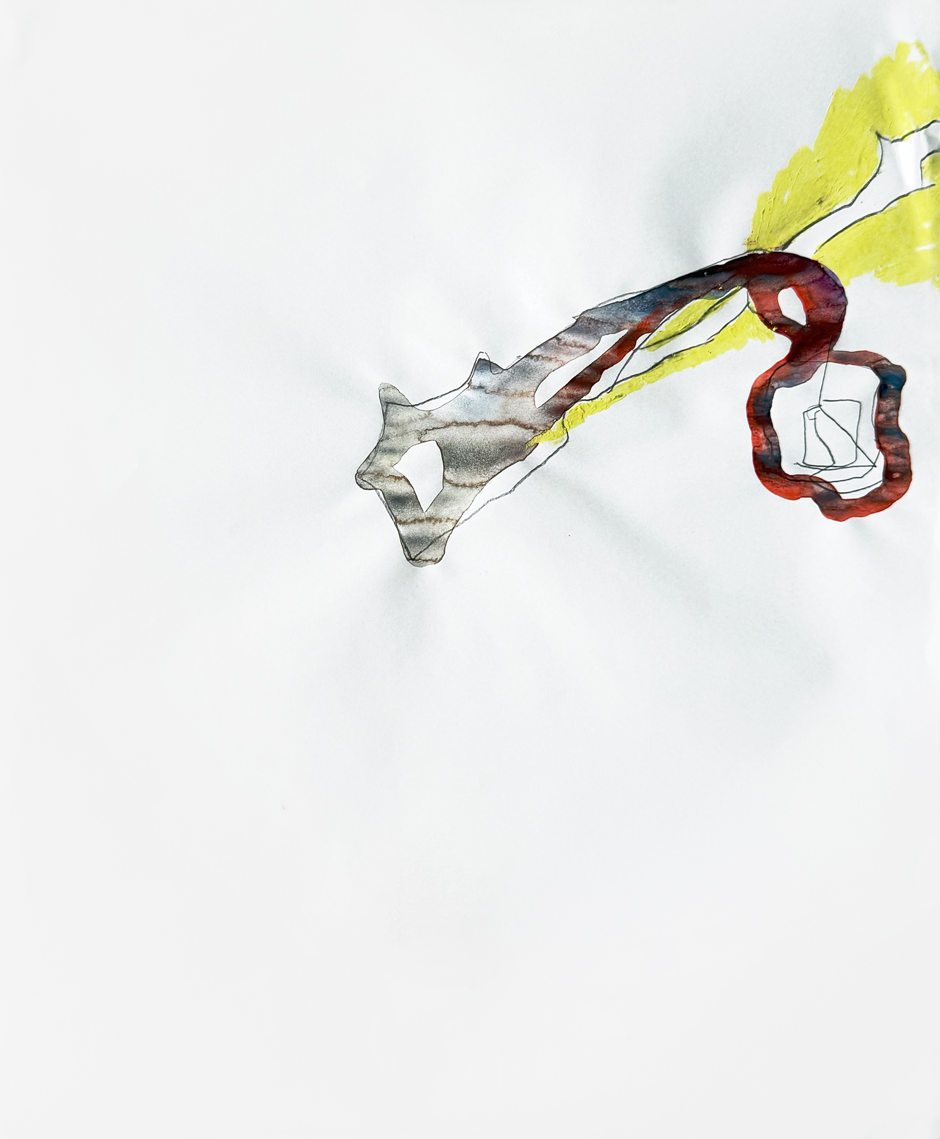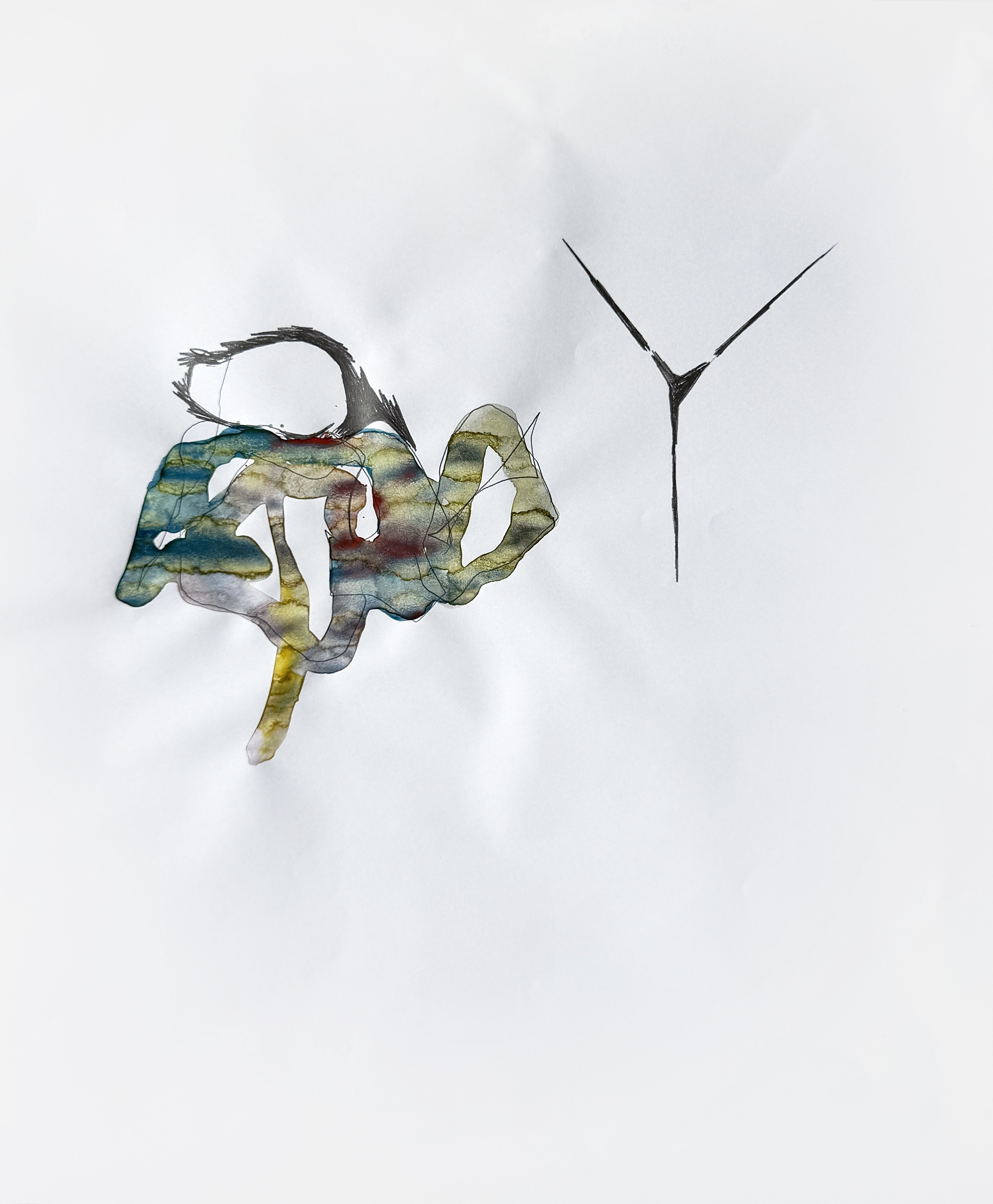 Paper, pencil, pen, watercolor, marker, pastel, monotype