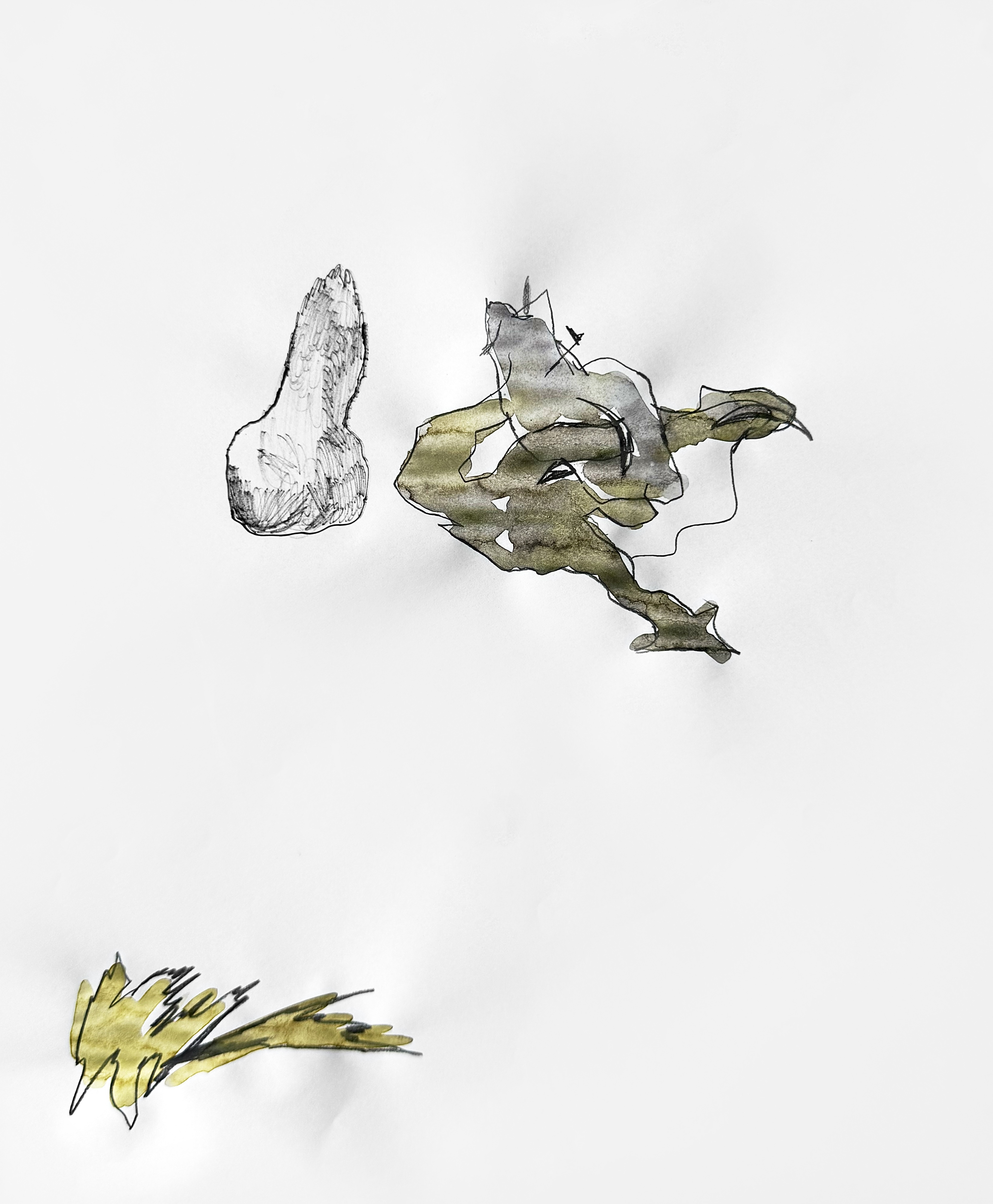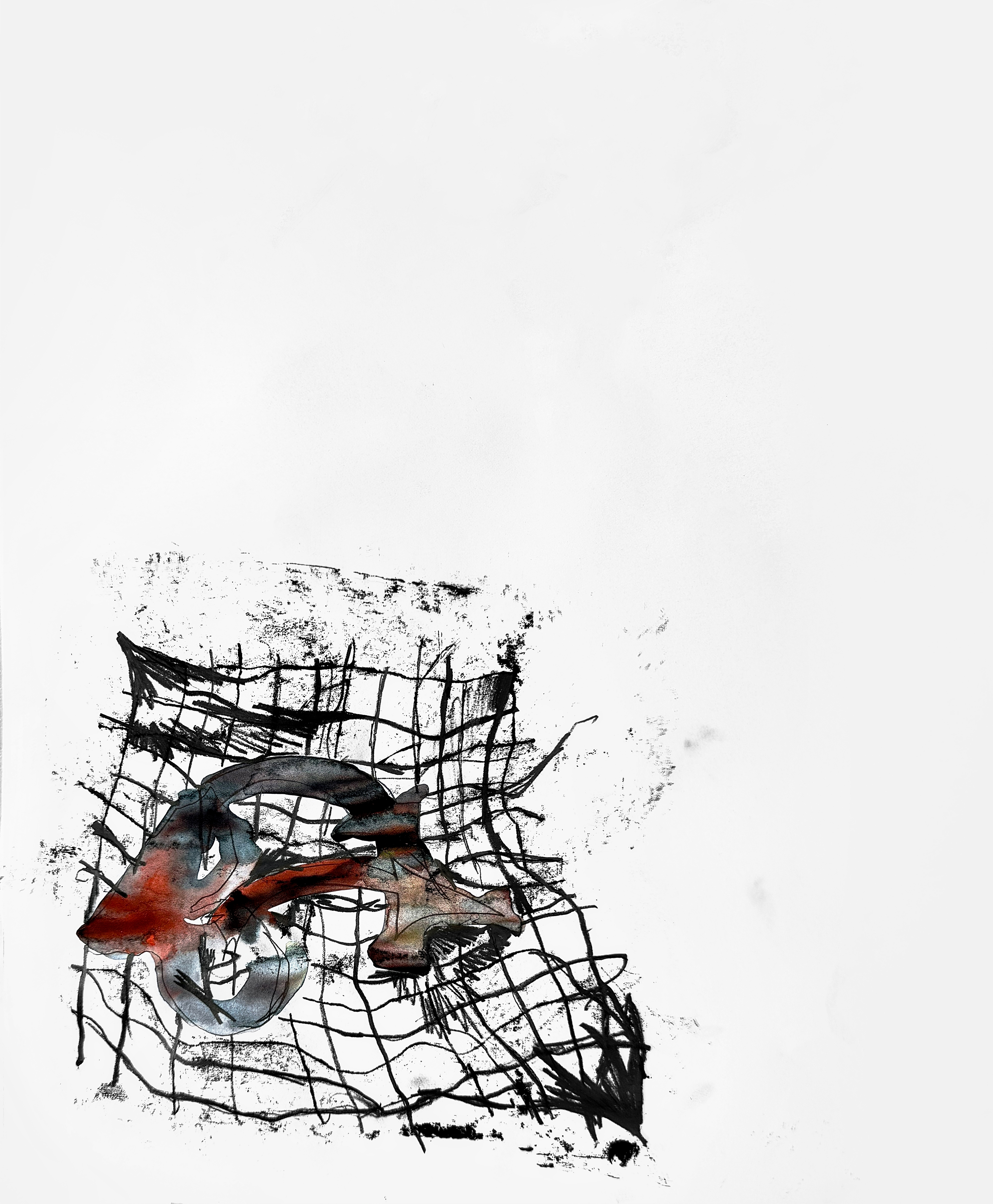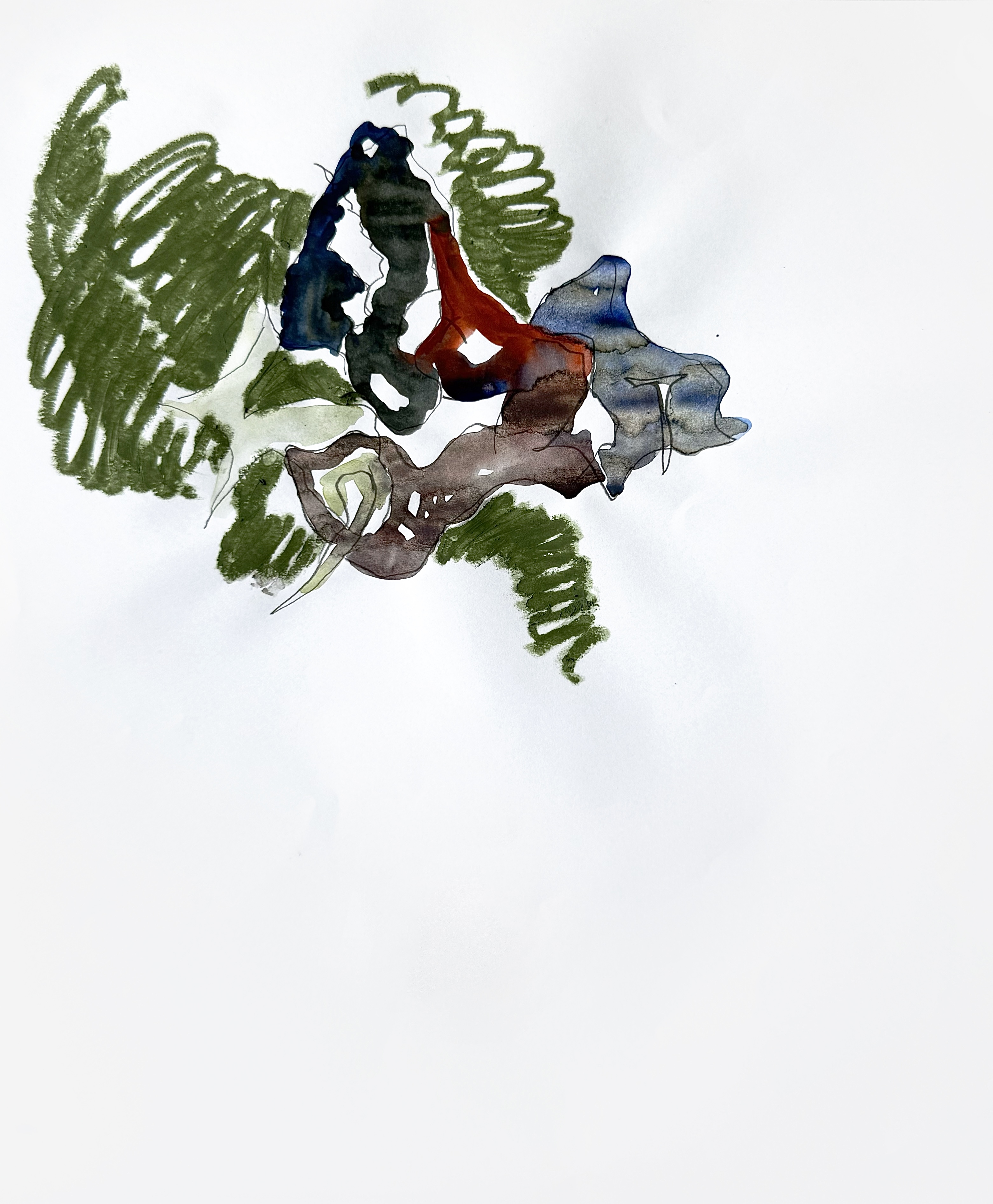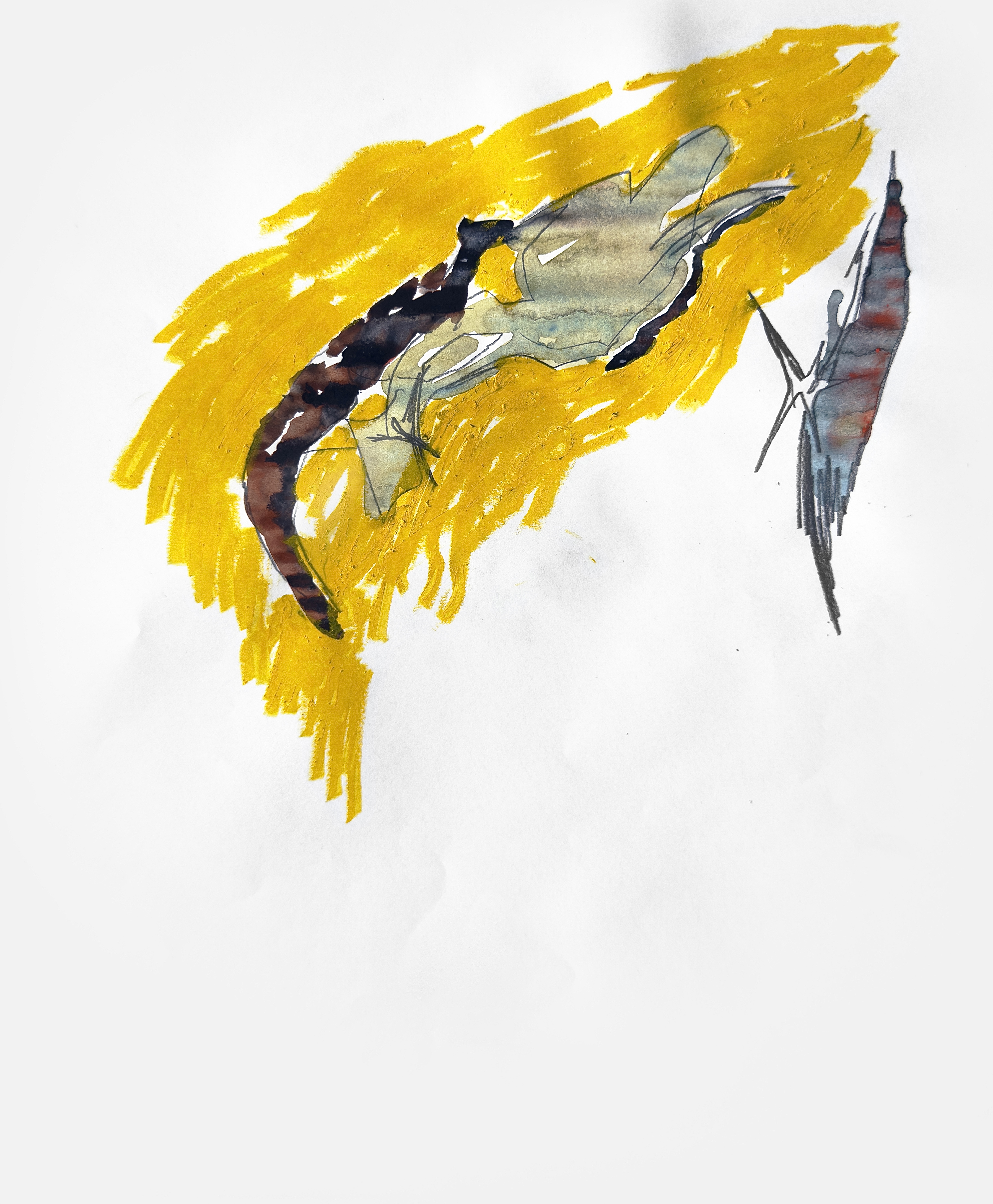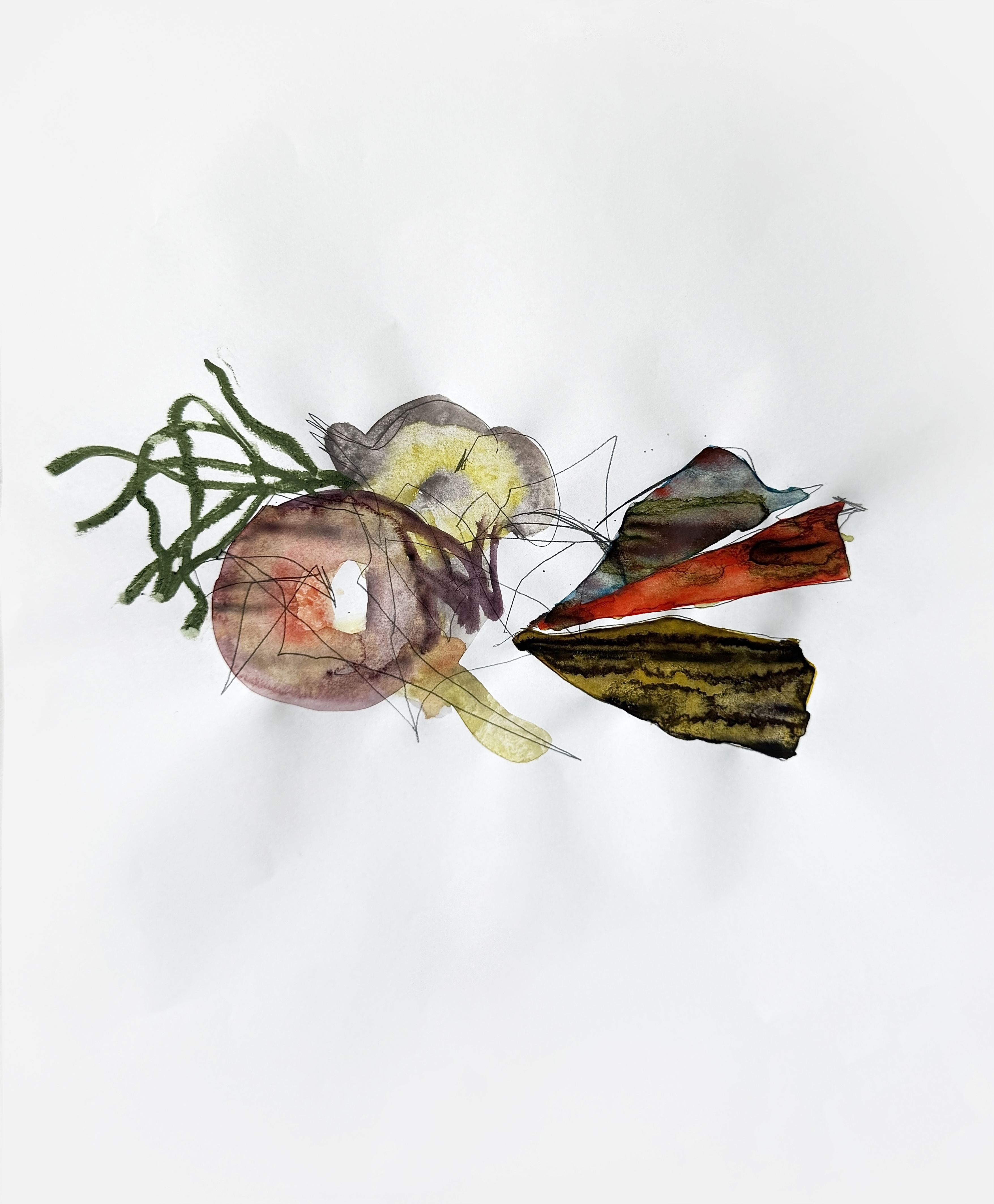 Paper, pencil, pen, watercolor, marker, pastel, monotype