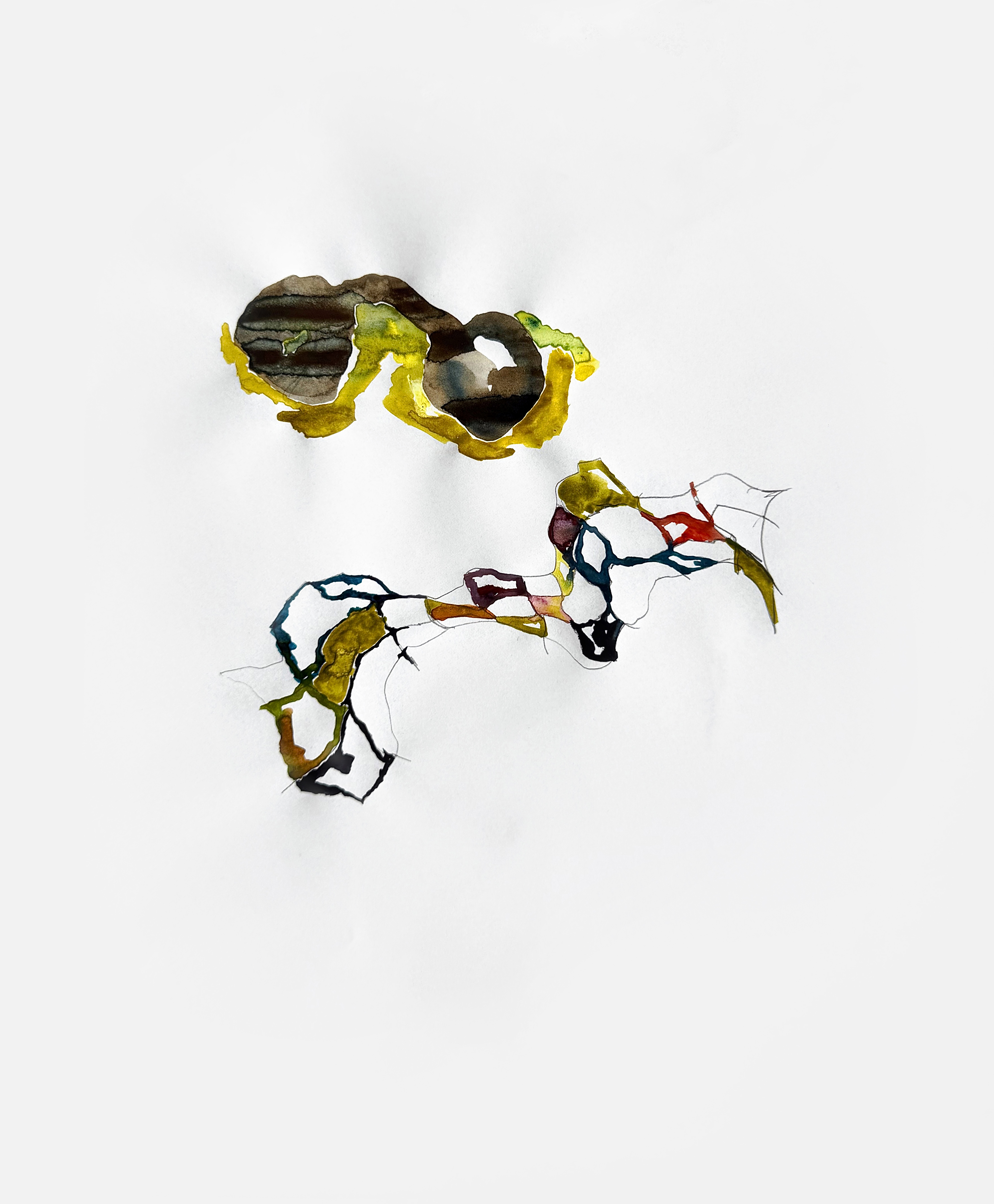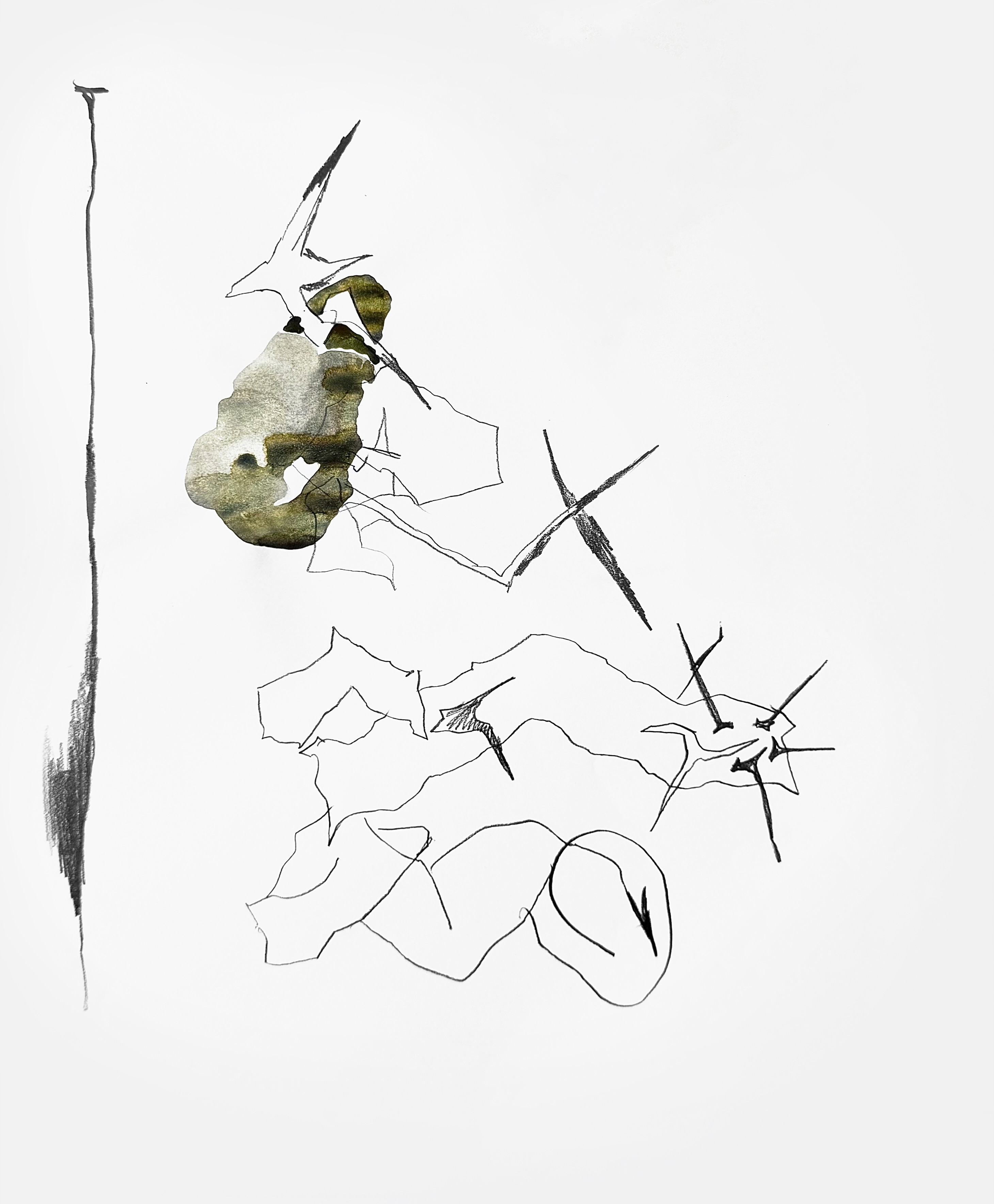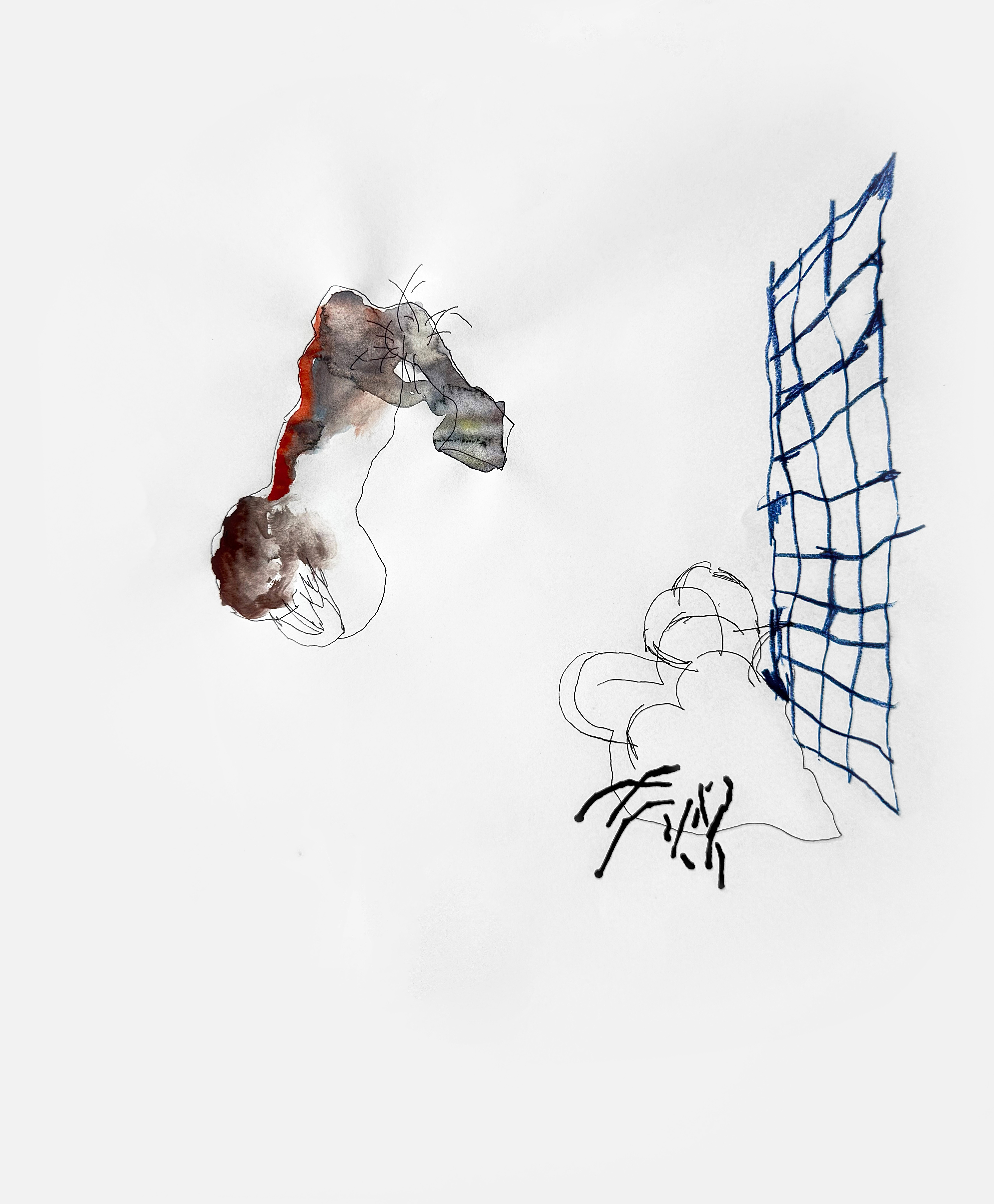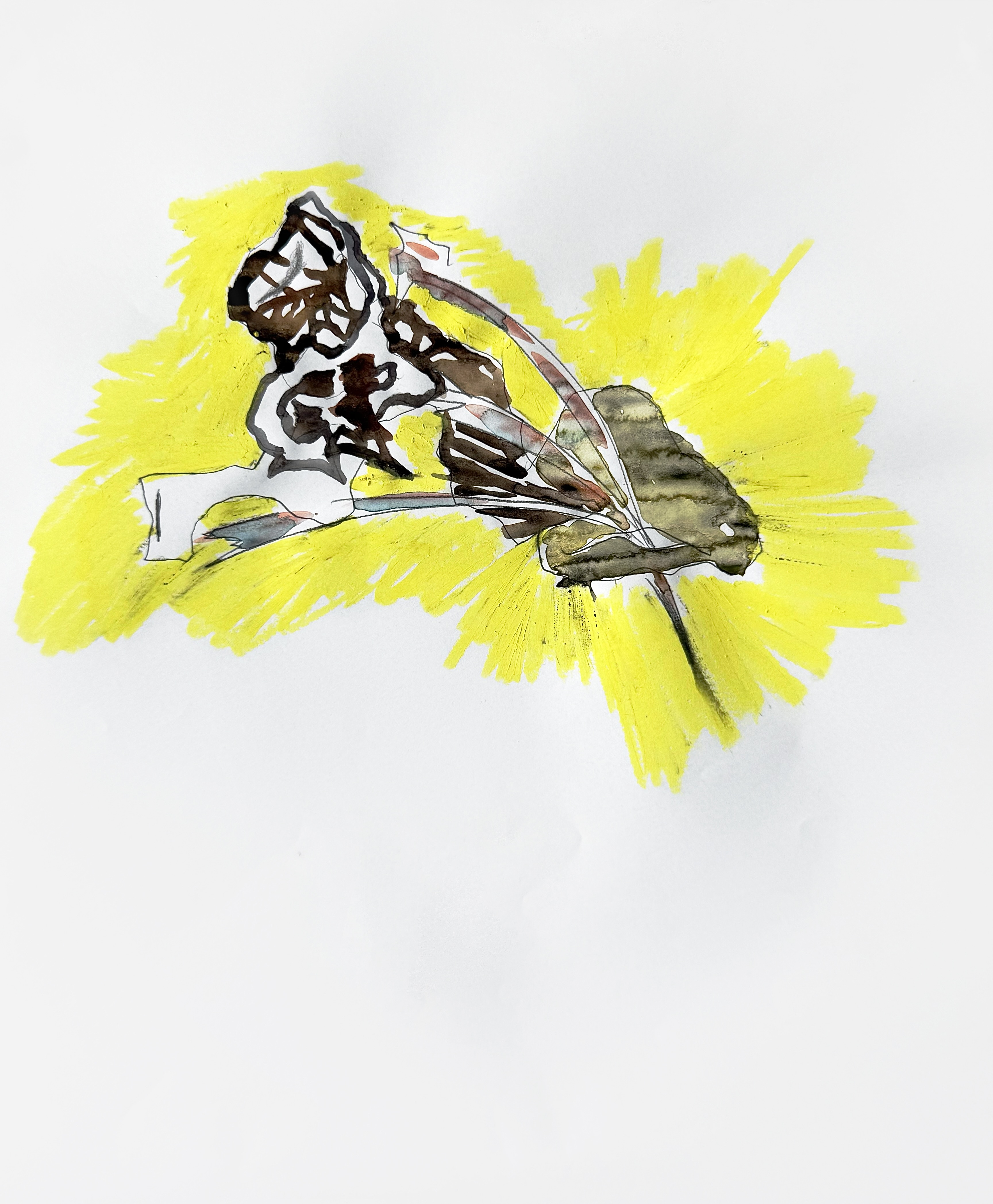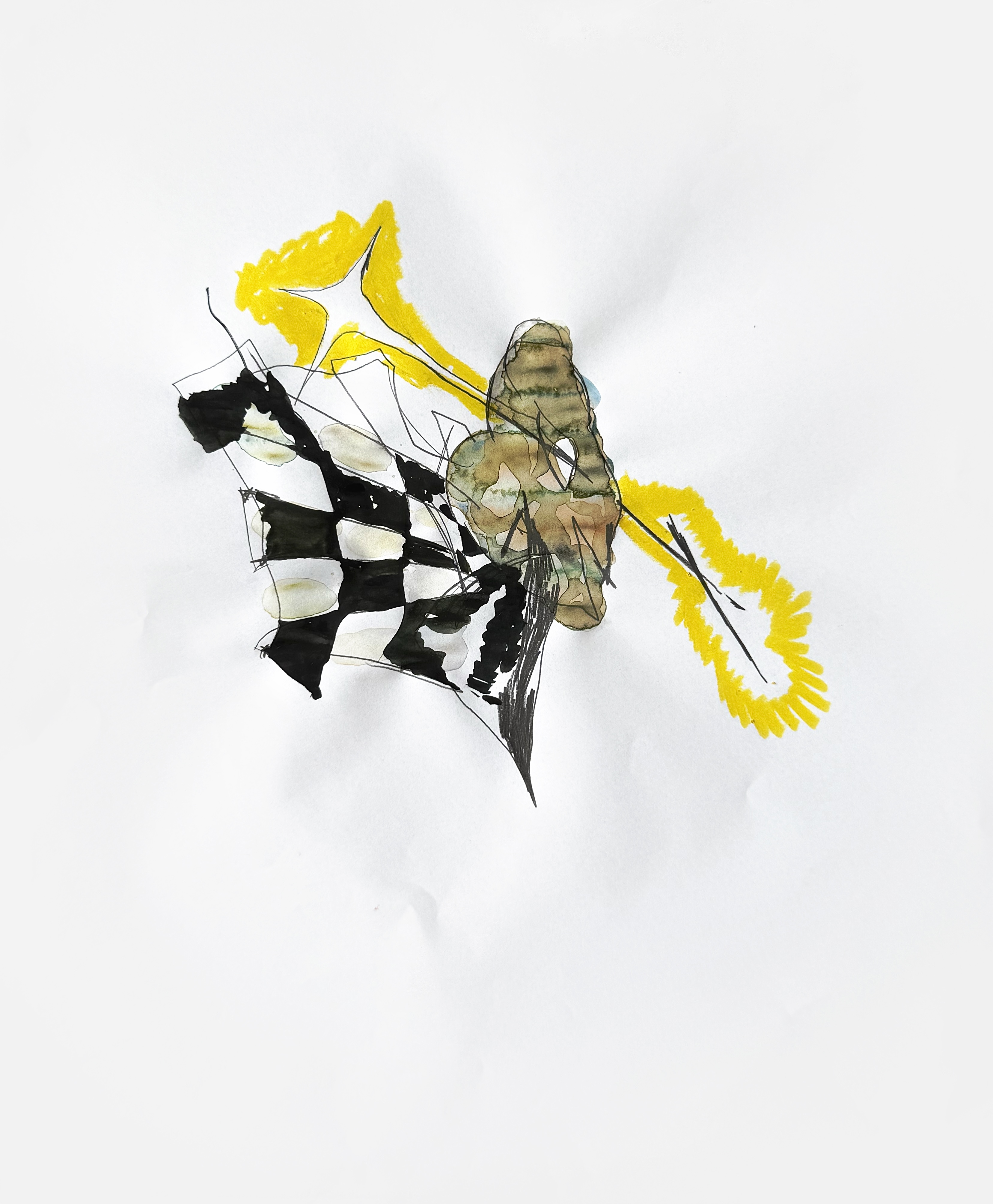 Paper, pencil, pen, watercolor, marker, pastel, monotype