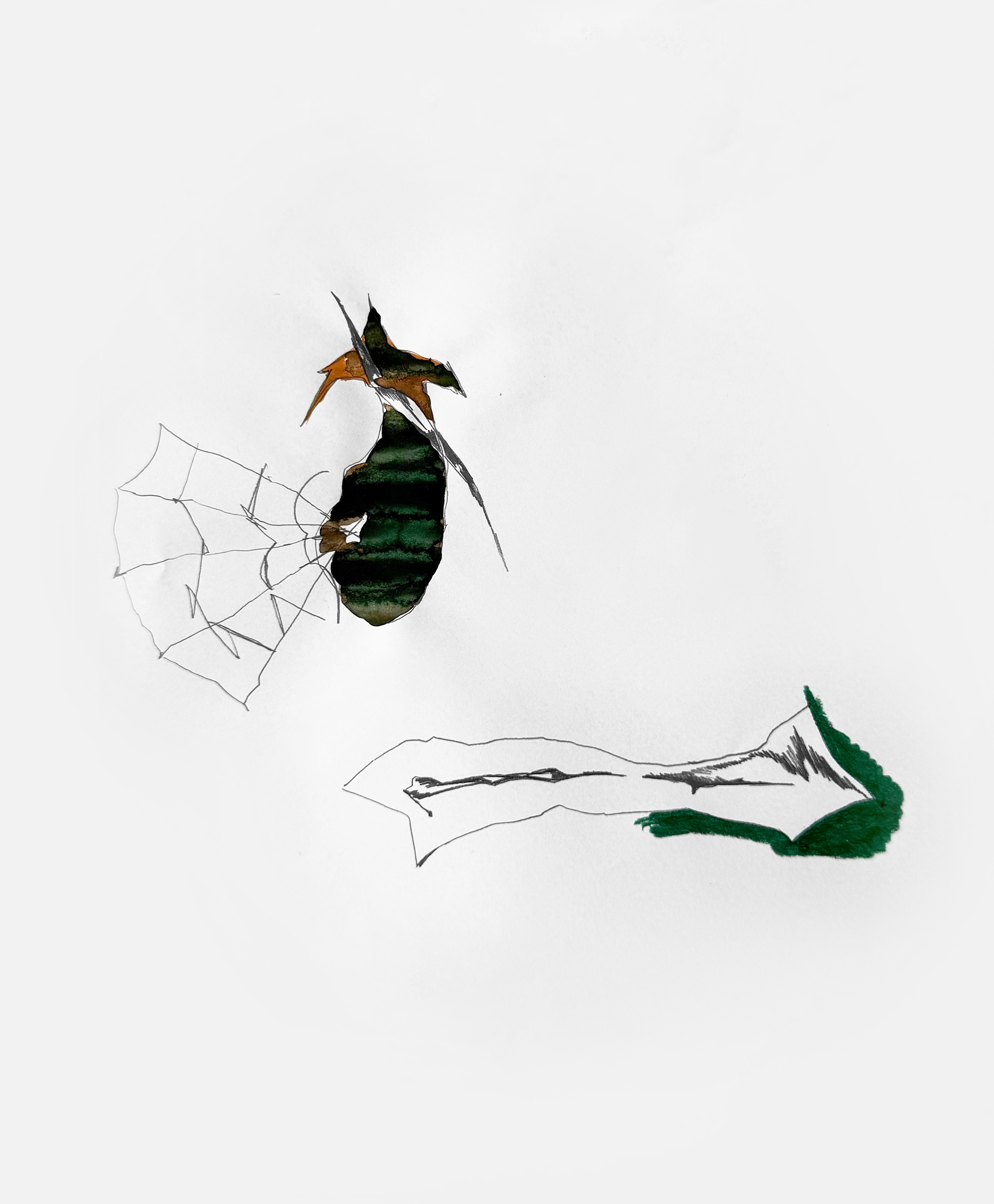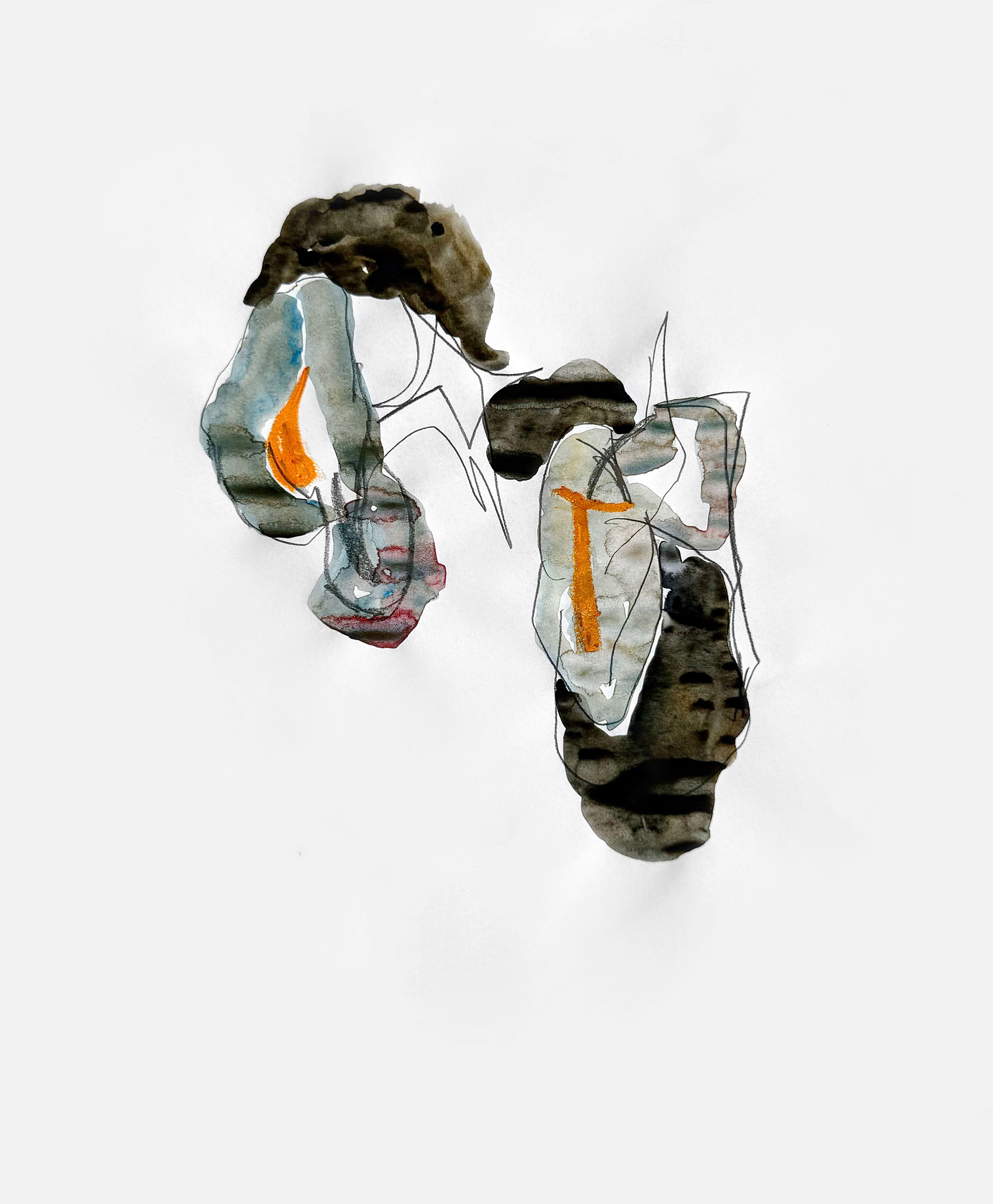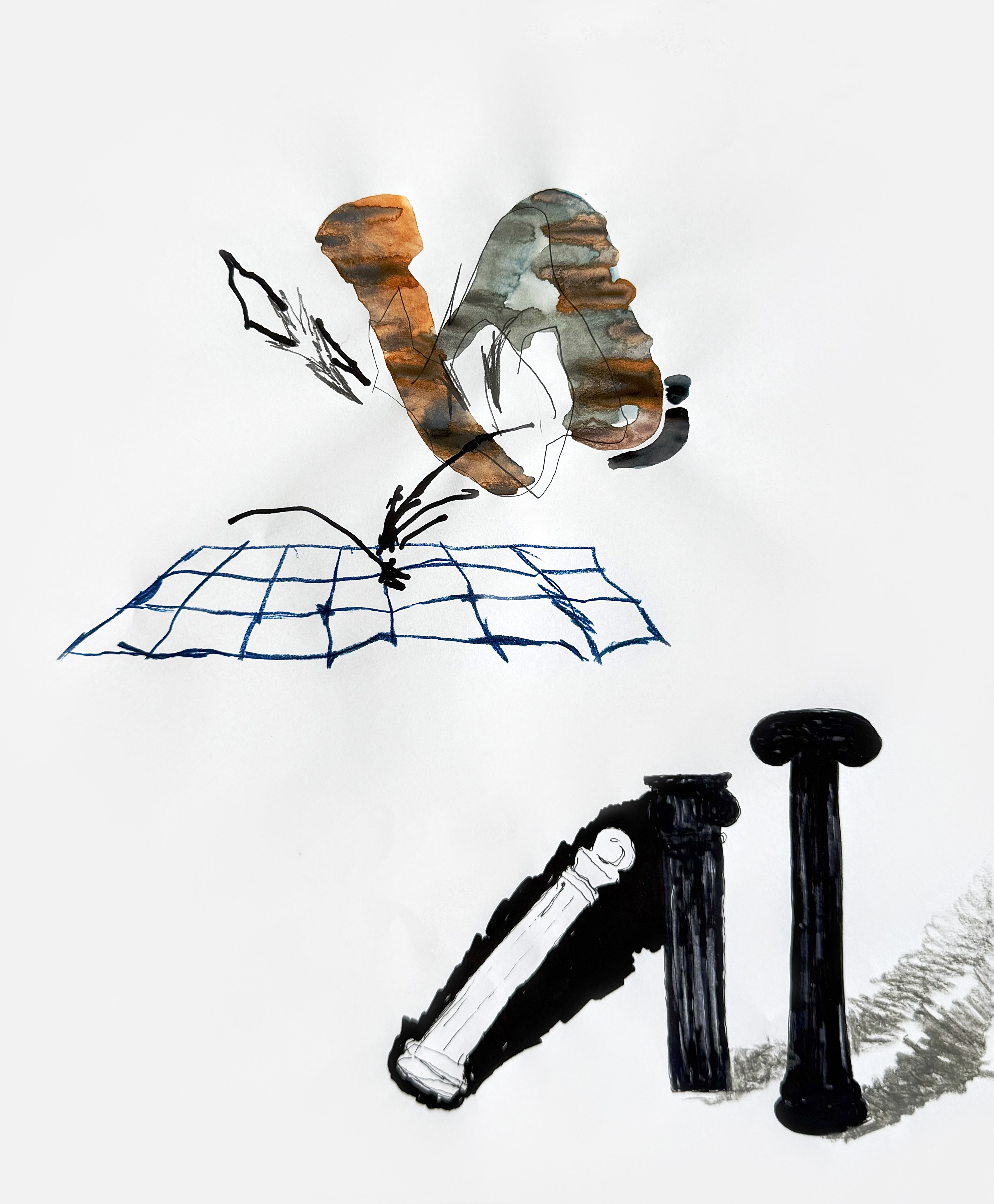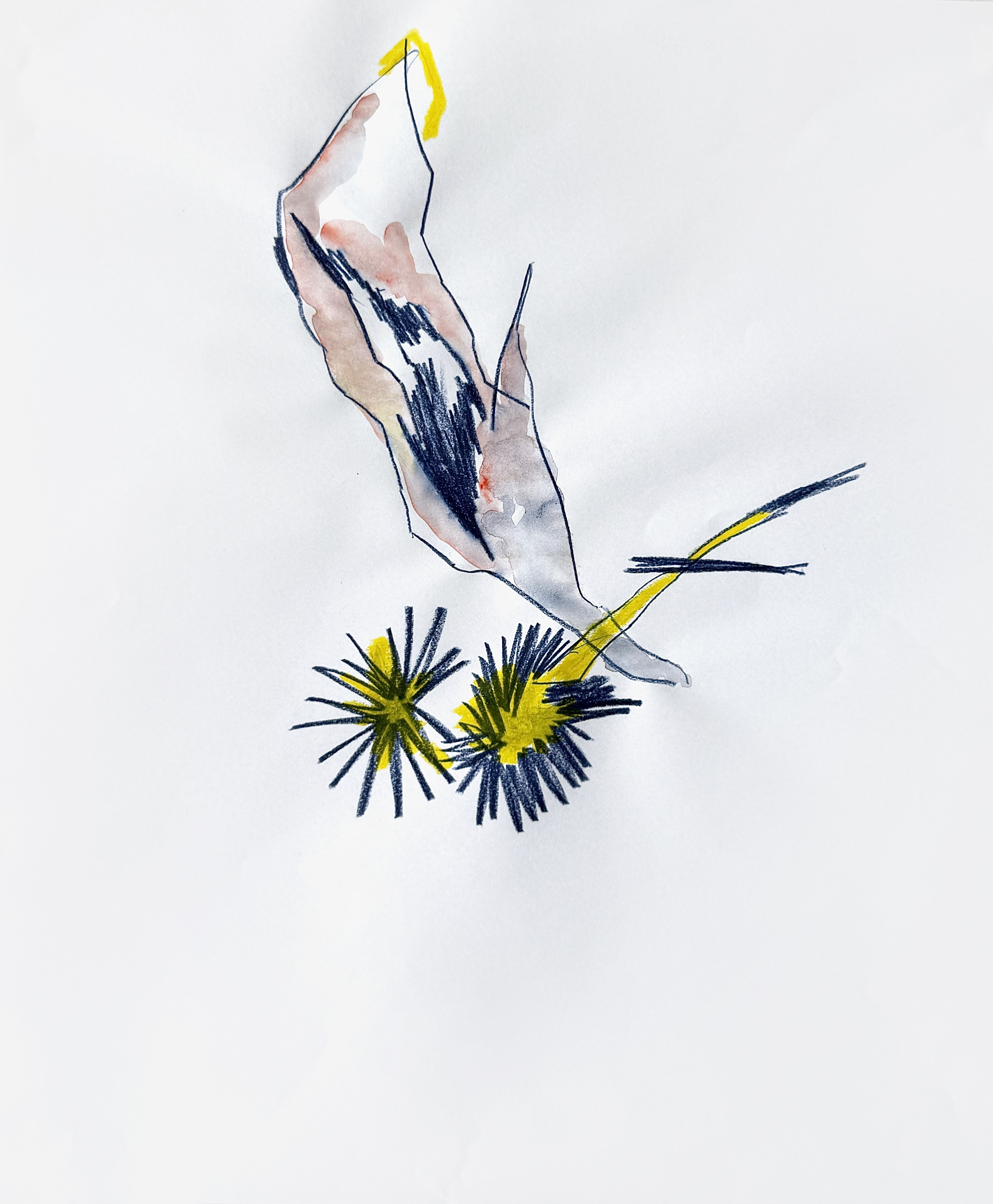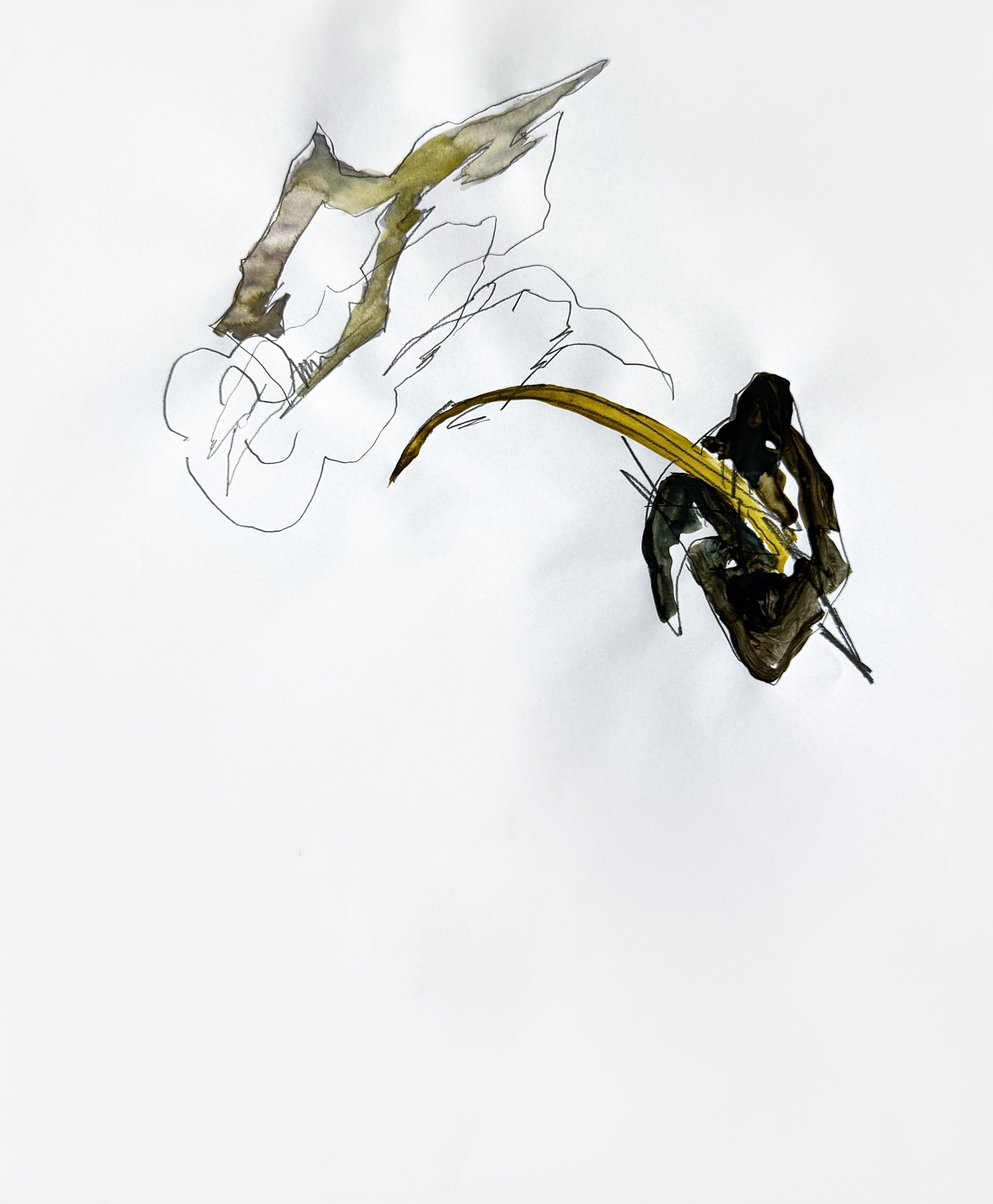 Paper, pencil, pen, watercolor, marker, pastel, monotype