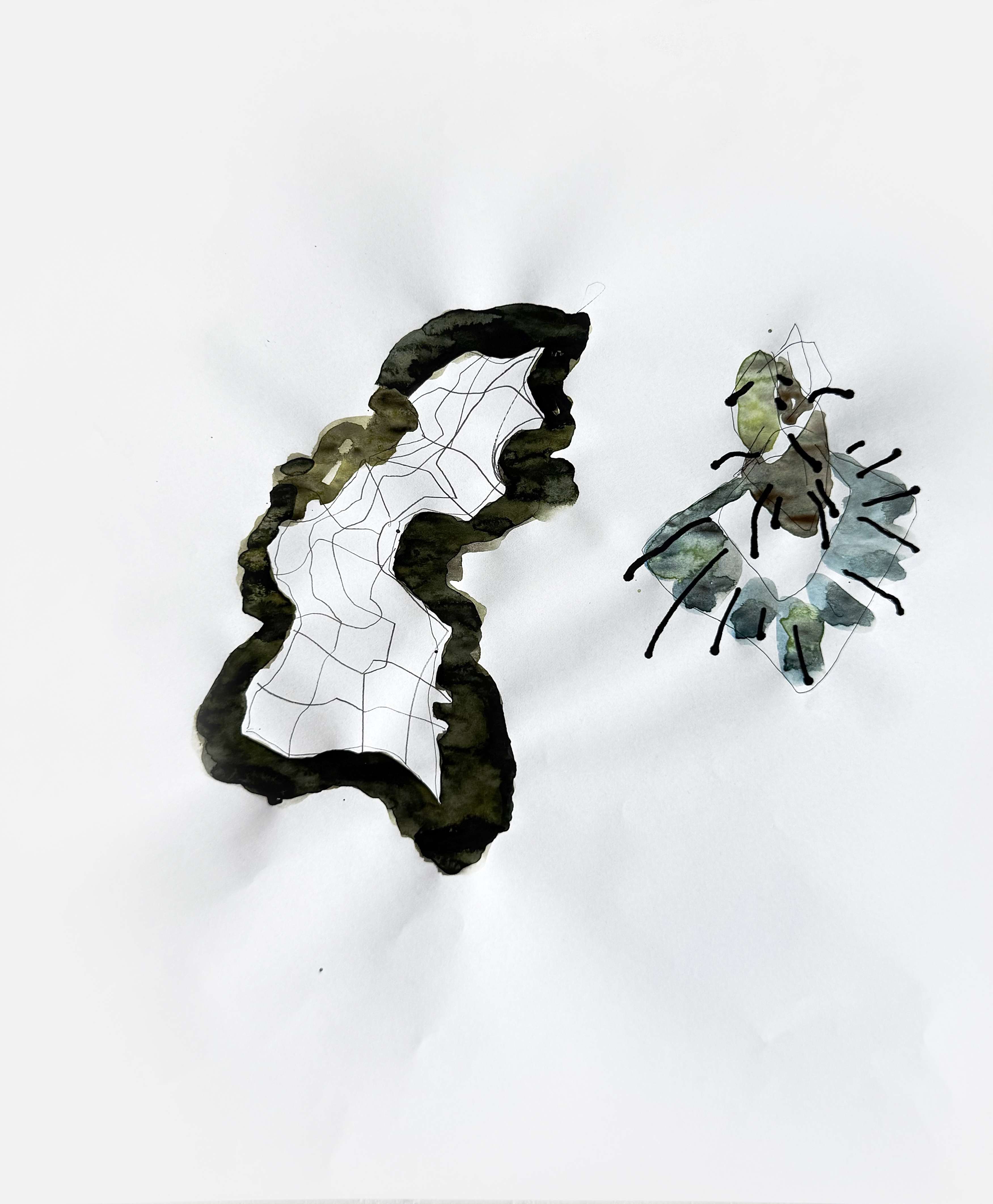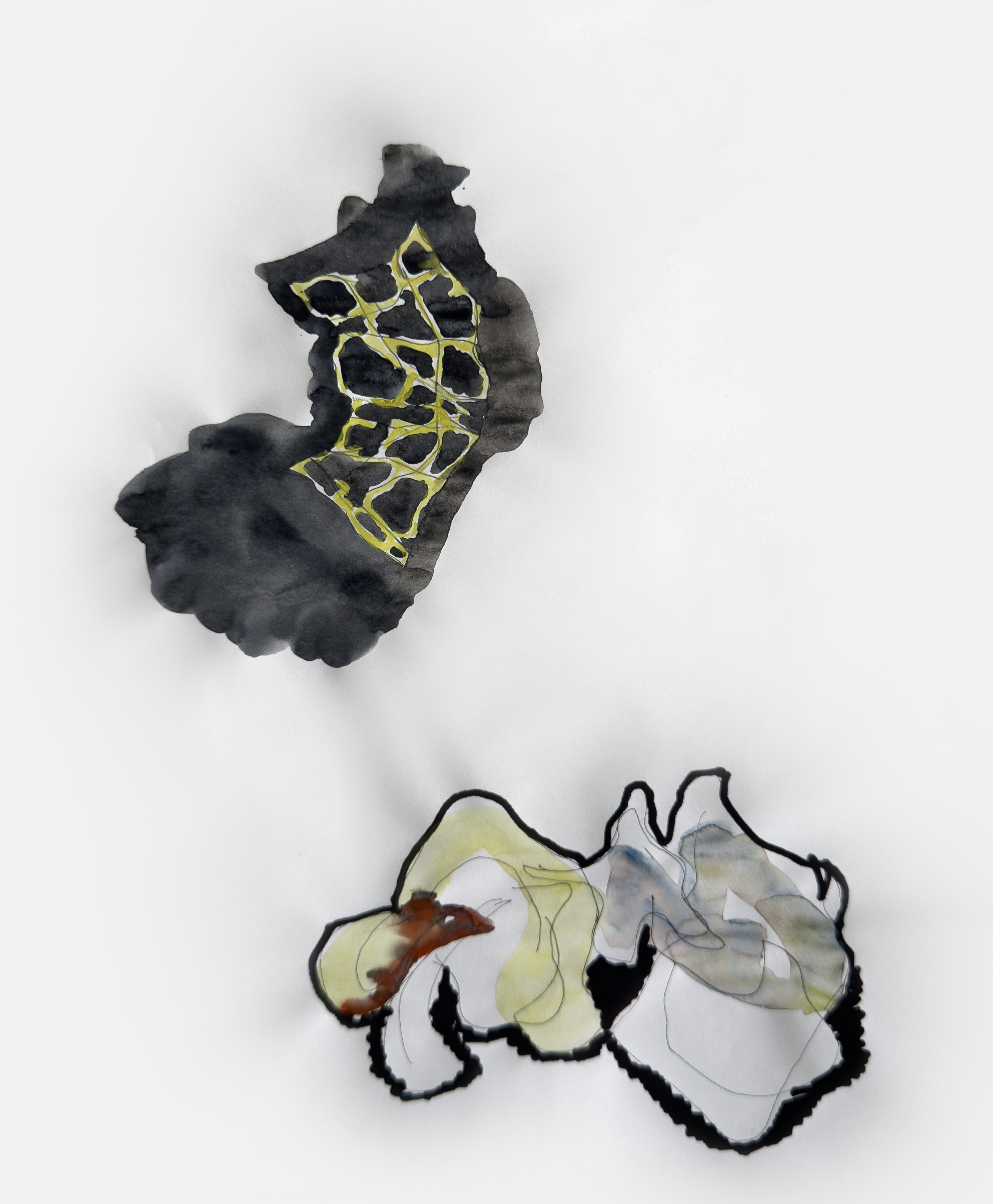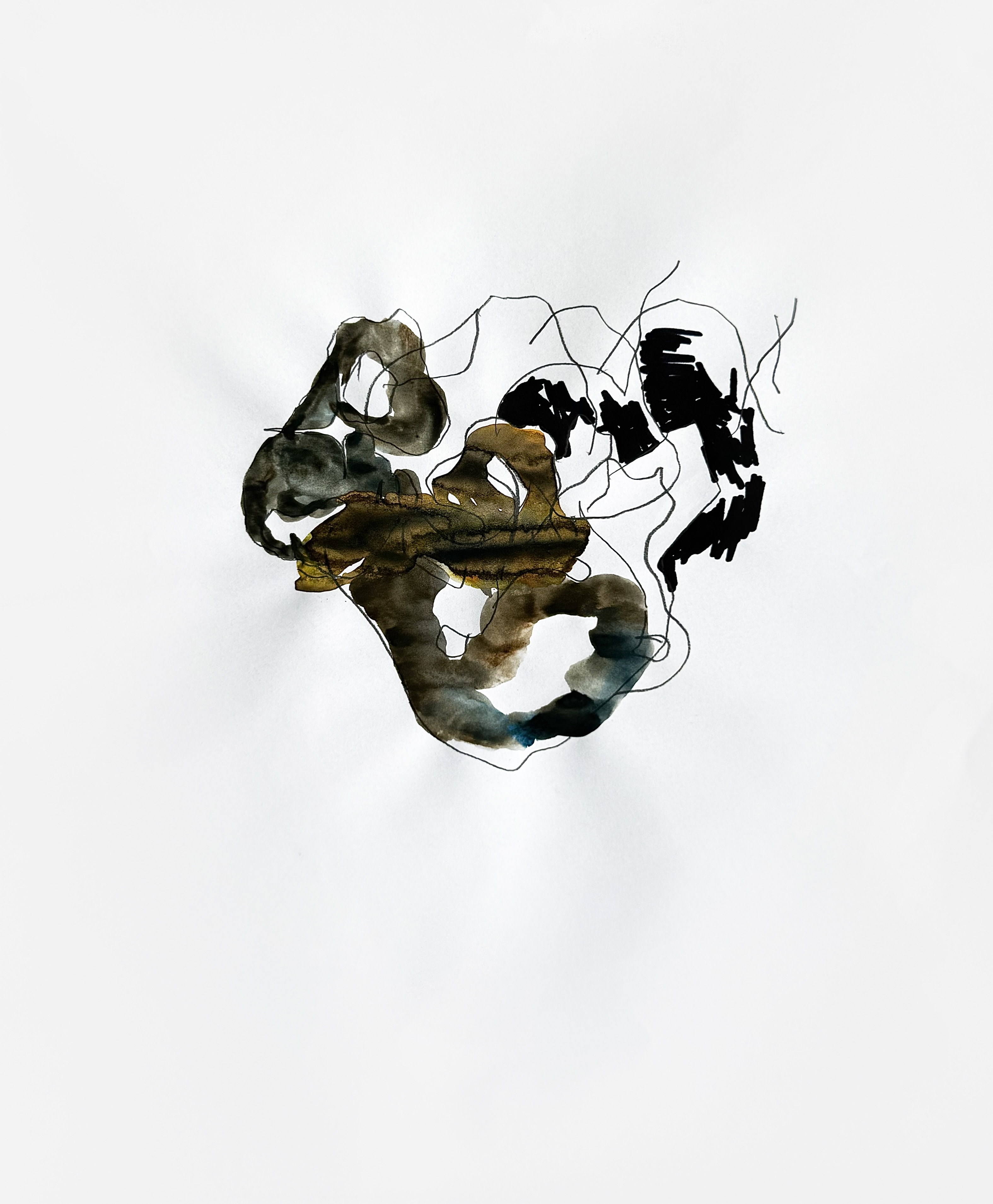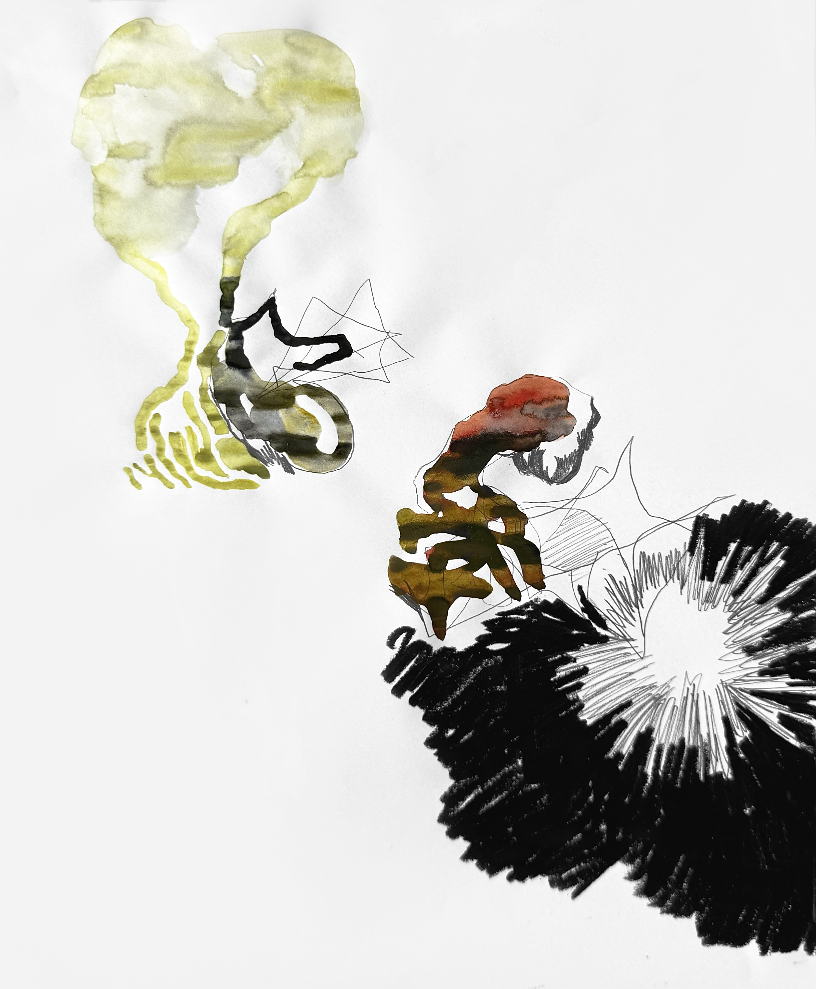 The graphic series Black Metal, created after the Russian invasion of Ukraine in February 2022, reflects on the destructive power and uncertainty of the war. The practice of intuitive drawing has become a way for the artist to cope with external events, a kind of escape. Although the works are executed in a style reminiscent of post-graffiti, elements of military reality can be seen in the abstract spots: there is dynamics, a map, a pattern.