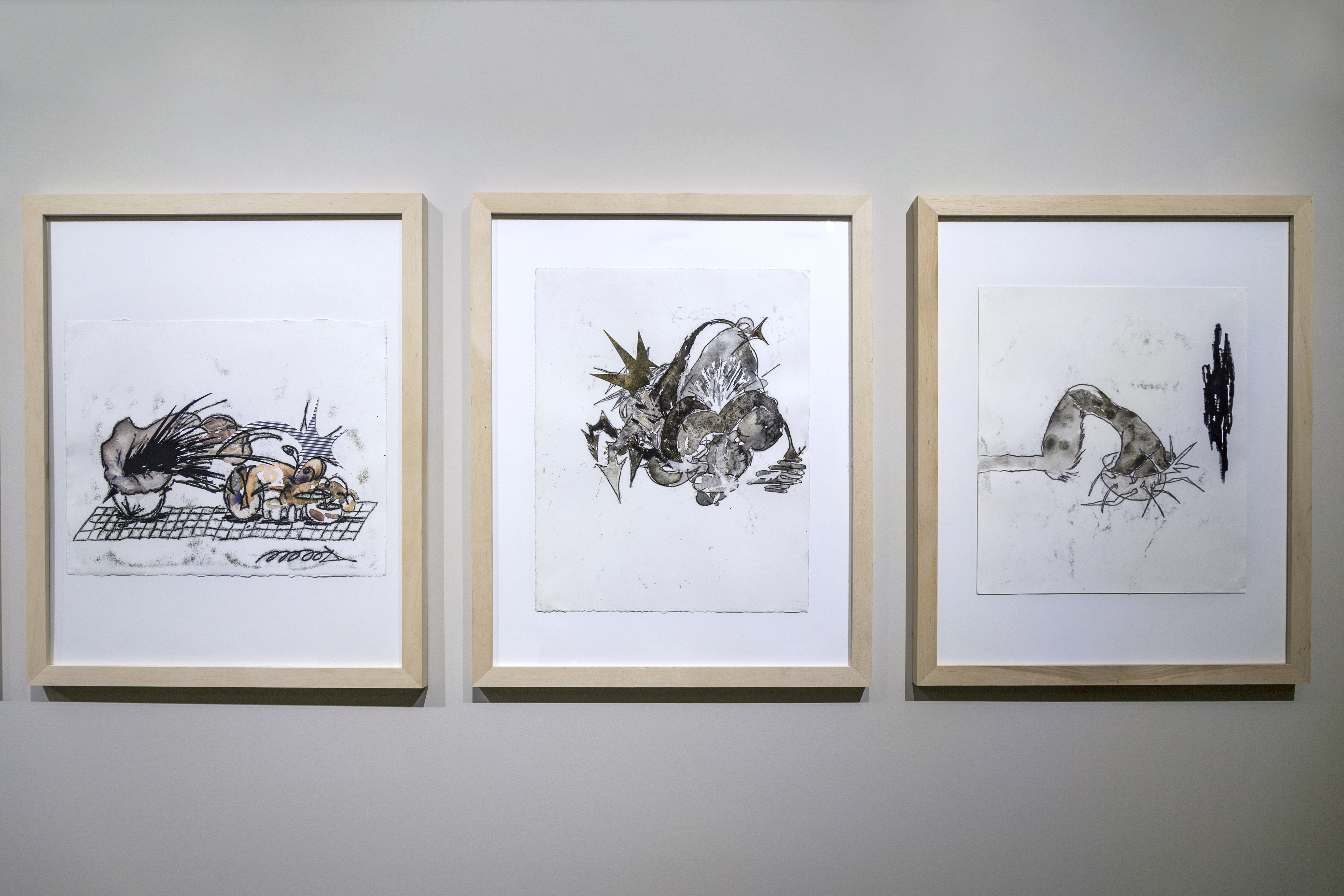The series of works on paper entitled Herbarium achieves the study effect with watercolor that makes the painting spontaneous and natural. The metamorphoses depicted here look both familiar and unfamiliar, like something that can evoke interest or disgust at the same time. However, after taking a careful look at the works, you begin to doubt whether these are actual plants. Or is it a potential scenario of ecological changes inside the pit?